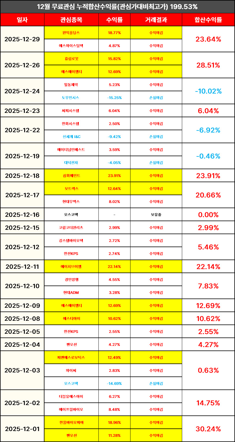 12월 26일 무료관심종목