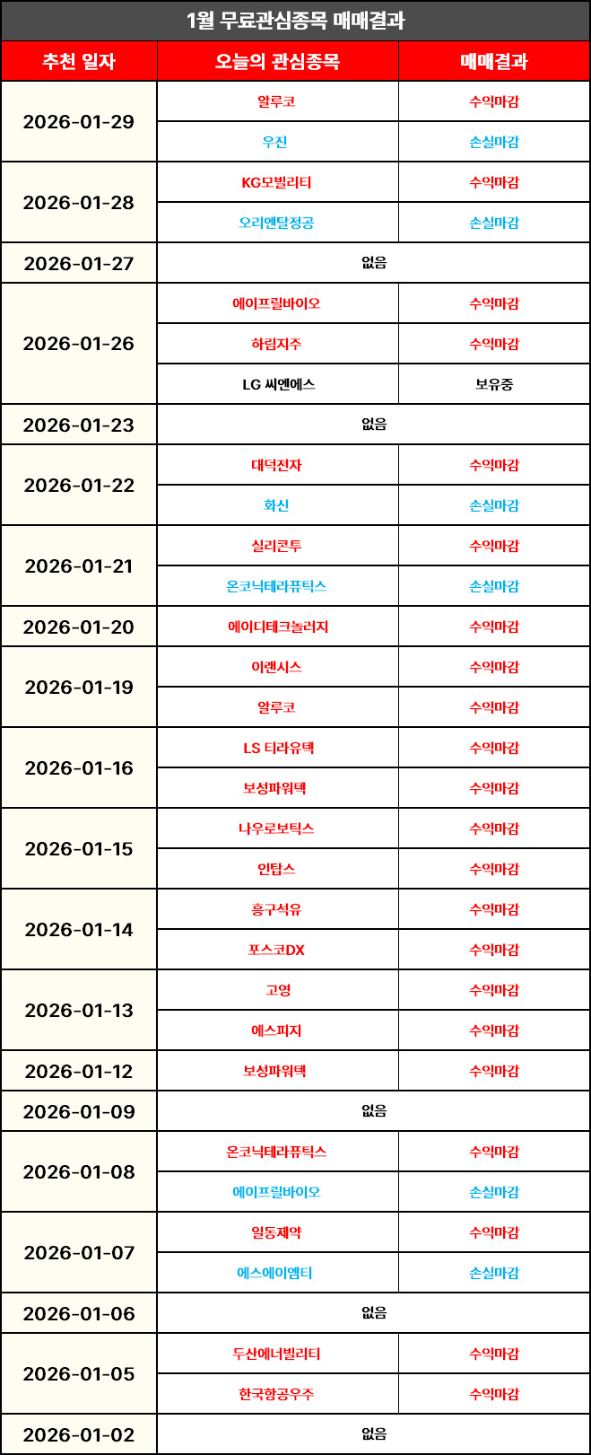 [금일 무료관심종목 결과 정리]