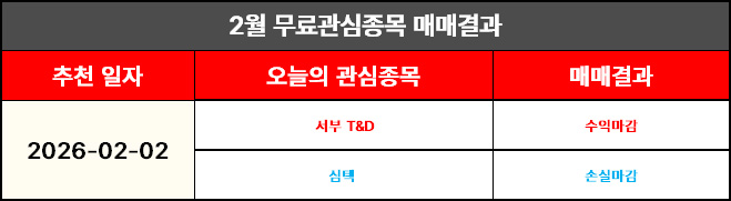 2월 3일 화요일 무료관심종목 (1전/1승)