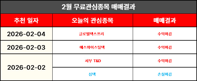 2월 4일 수요일 무료관심종목 (1전/1승)